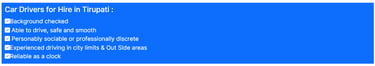 At Sri Lakshmi Srinivasa Travels, We have experienced drivers who can provide smooth transportation in Tirupati. Every one of our professional drivers is highly skilled and ensures safety and comfort for passengers for daily commutes, airport transfers, sightseeing tours, or special events. A customized driving experience that is tailored to your exact needs is our top priority, while punctuality and customer satisfaction are the key matters we concentrate on. With trust in Sri Lakshmi Srinivasa Travels, you are assured of an efficient and trouble-free ride, as you pitch your chair within your seat and enjoy the ride. Irrespective of short or long trips, we have professional drivers with a deep understanding who guarantee smooth and pleasant riding for each passenger.
