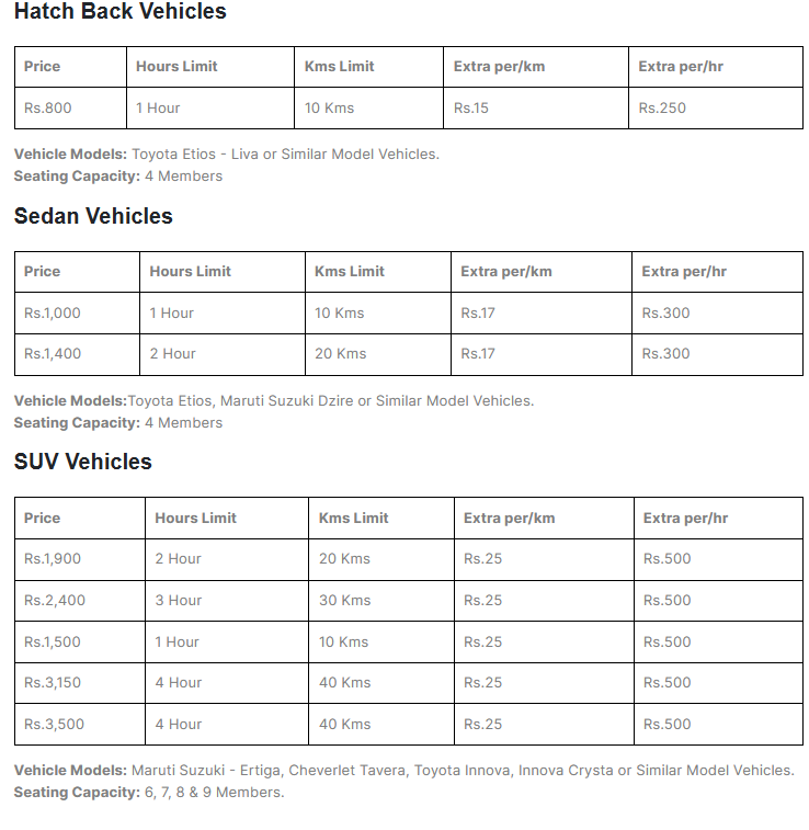Finally, the hourly car rental of Sri Lakshmi Srinivasa Travels is a perfect option for those who prefer slow and thorough exploring. Their dedication to customer service, coupled with a diverse inventory of vehicles and reasonable prices, makes them the preferred choice for both tourists and locals alike.