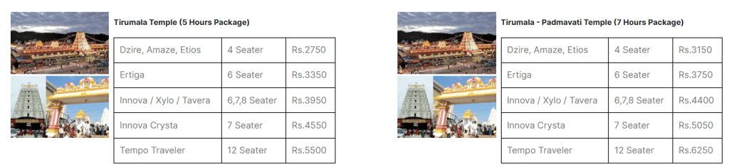 You can avail of our airport taxis almost at any time of the day, whether you come to Tirupati for business, on family holidays, or for your spiritual journey to the famous Tirumala Temple. We realize the great significance of punctuality, especially with airport cab service. Thus, we do all we can to ensure your travel experience remains effortless and hassle-free, from when you first land until you reach your ultimate destination.