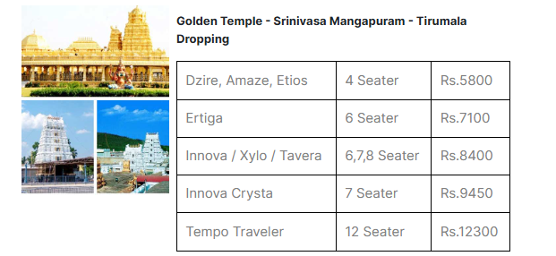 Sri Lakshmi Srinivasa Travels provides a hassle-free and pleasant journey environment, with knowledgeable guides giving their insights into the interesting past and the cultural identity of each destination. Our progressive itinerary covers the transport, accommodation, and special assistance tailored to your needs allowing you to indulge in the spiritual realm of Tirupati and the splendid aura of the Vellore Golden Temple.